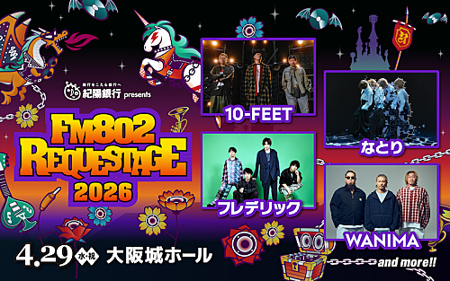 FM802による恒例のライブイベント【FM802 SPECIAL LIVE 紀陽銀行 presents REQUESTAGE 2026】が、今年も大阪城ホールにて4月29日に開催される。 本イベントは、”番組にリクエストされるアーティス … 続きを読む